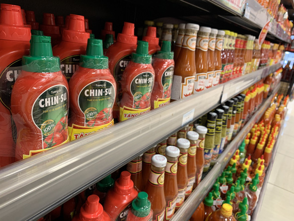Sản phẩm của Masan – tương cà Chinsu - được bán trên kệ một siêu thị ở TP.HCM - Ảnh: BÔNG MAI